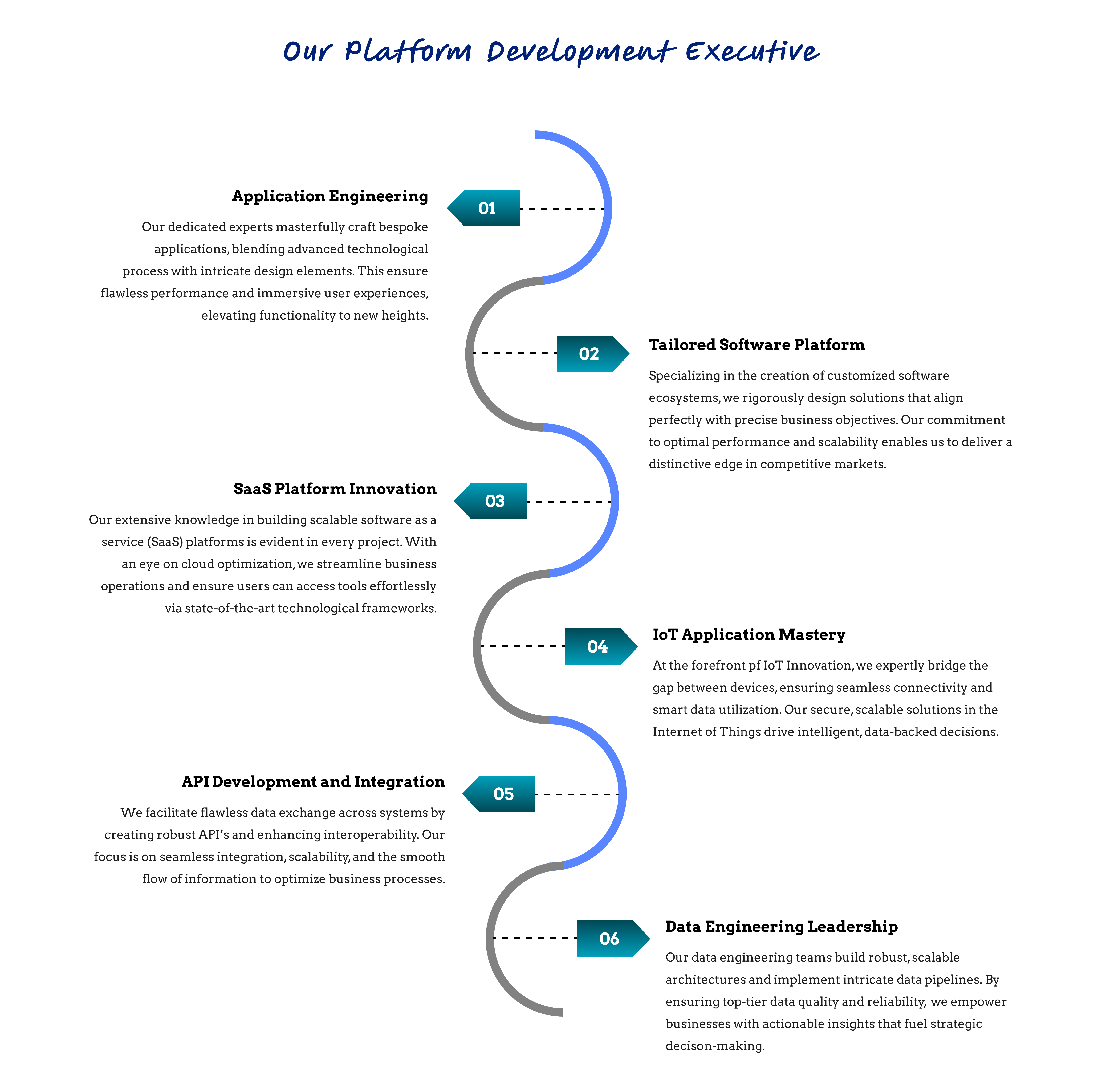 Platform Creation: the meticulous crafting of intricate software frameworks and ecosystems that empower businesses to streamline operations, enhance synergies, and impart unparalleled value to end users. This foundational undertaking supports myriad applications and services, tailored for a foundation that is not only robust but adaptable.